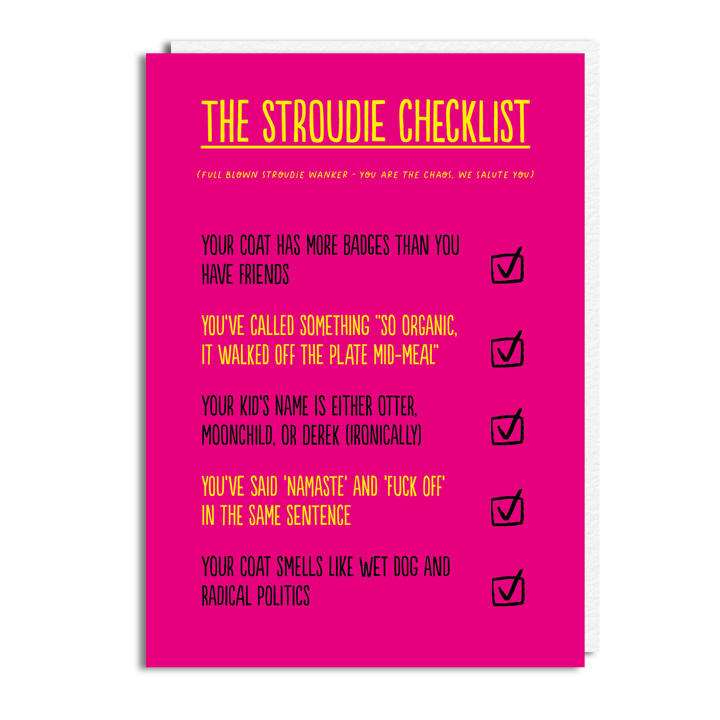 Bespoke Designs › SCL-06 - CHAOS STROUDIE CHECKLIST Image 1 of 1 SCL-06 - CHAOS STROUDIE CHECKLIST £1.05 Size: 133 × 184mmEnvelope: WhiteFinish: SatinCello: Yes Quantity: Add to Order Added! Size: 133 × 184mmEnvelope: WhiteFinish: SatinCello: Yes Reviews Reviewer Name Review Date Star Rating Description Posted on Etsy Product Show More